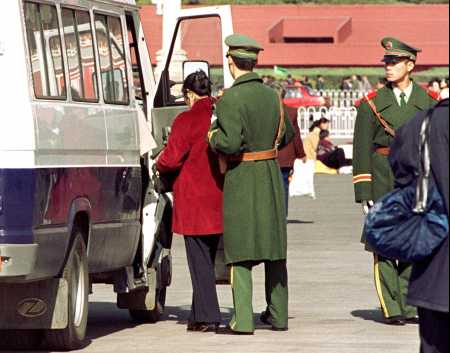 天安门前法轮功学员被送上警车