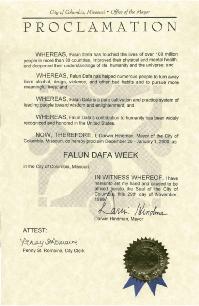 公告鉴于 法轮大法之影响力遍及逾30个国家的过亿人口,从而改变了他们的身心健康,使他们加深了对生命,人类和宇宙的了解; 鉴于 法轮大法帮助无数人摒弃了酗酒,吸毒,及其它恶习,使之转而追求更有意义的生活; 鉴于 法轮大法是引导人们大彻大悟之完美的修炼体系;并且 鉴于 法轮大法对人类之贡献已获广泛认同,并享誉美国。