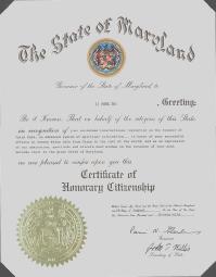 马里兰州政府授予李洪志先生荣誉市民证书