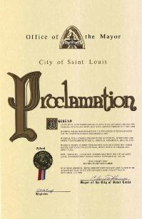 9月17日,圣路易市市长先生签字宣布1999年9月18日为圣路易市“法轮大法日”。