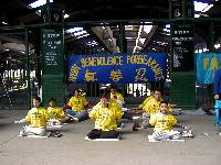 | 展位前炼功洪法 | 码头炼功洪法 |