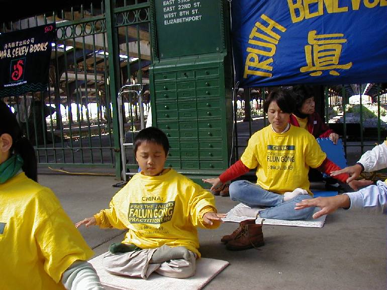 有一对大陆来的但讲不好普通话的老夫妇,在炼功的学员面前站立良久,一直目不转睛地注视着。一位学员上前与他们交谈,老两口对法轮功教人真修向善的真谛心领神会。当学员说到大法洪传,无数的修炼者身心受益时,老先生立刻指着手中大法报纸上真善忍三个字连连微笑点头,学员从他的脸上读到了这位老先生的心声。是啊,叫人修真善忍的功法能不是最好的功法吗?能不得到最广大的善良人们的拥护和喜爱吗?