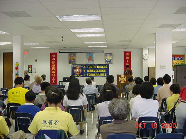 接着,学员们一起学习了师父最近的几篇经文和讲话,并研讨了明慧编辑部的文章和揭露江泽民加紧镇压法轮功的文章等。之后,中美新老学员上台报告自己的修炼心得和当地的弘法经验。