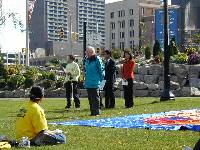 随后大家又回到公园交流各自的感受,谈及这次洪法中做得不足的方面以及暴露的自身执著。大家认识到在法正乾坤的特殊修炼时期,我们做的还远远不够,而一次次走出来洪法护法也正是慈悲的师父为我们安排的提高的机会。我们得到了大法,还有那么多的人迷失在物欲横流的社会中。法轮大法周给了我们一个启示,以后我们将不断用我们的智慧去洪扬大法,向更多更广的世人说明真相。