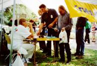 许多人过来取大法资料并登记参加洪法班,有些一看到横幅就知道这是中共正在镇压的法轮功,他们对中国政府残酷迫害法轮功学员非常气愤。有一位对我们说:“你们幸好不在中国,……”,有的看了我们的功法展示后告诉我们,中国政府在破坏自己国家的优秀传统文化。