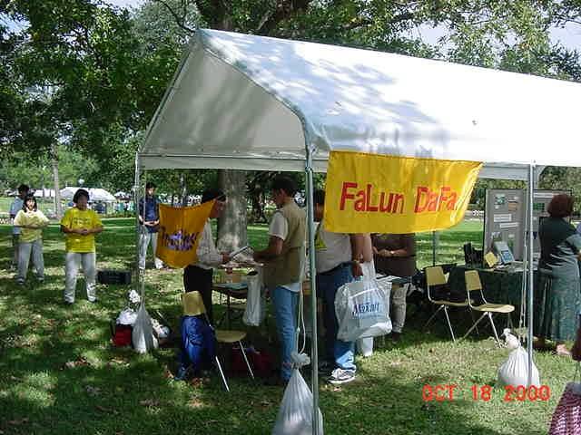 【明慧网2000年10月21日】 十月十八日是位于休斯顿的美国宇航航天中心一年一度的“健康日”。这一天,宇航中心的各大公司都举行盛大活动,各种活动项目在其网址上排列达十九页之多。为配合这次活动,宇航中心邀请了近百家有关单位和团体前来参加,设置了近百个展棚。世界最大的宇航军用公司--洛克希德公司首次正式邀请法轮功学员前往展示法轮功法,江泽民镇压法轮功使得法轮功从公园晨炼逐渐步入美国主流社会。