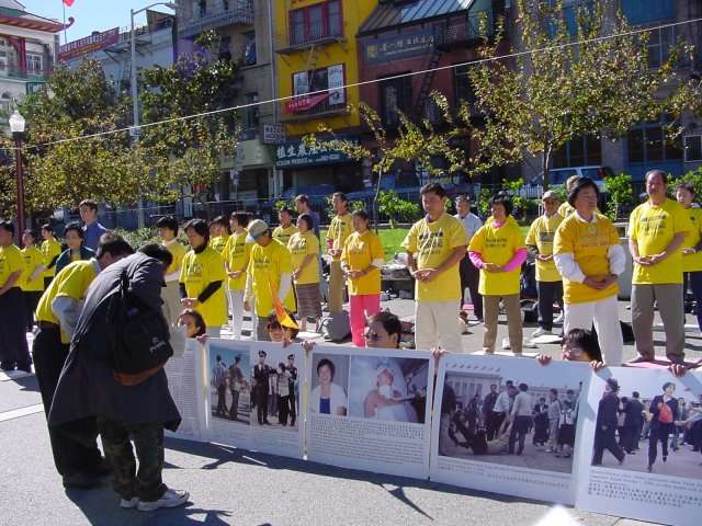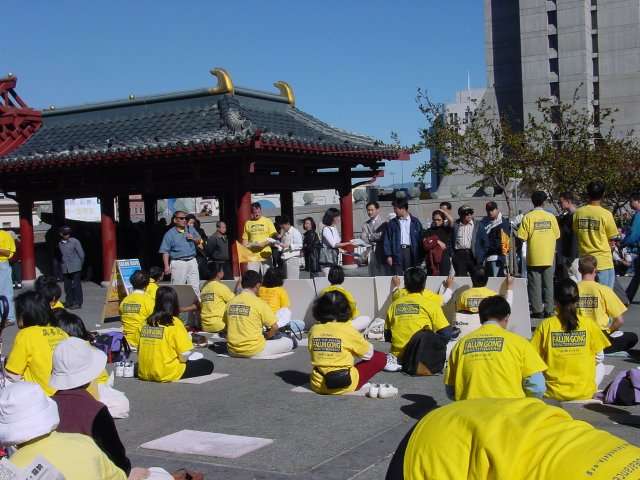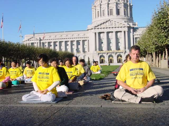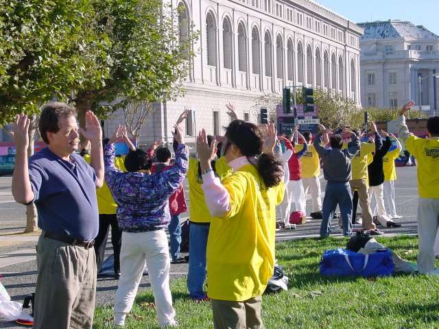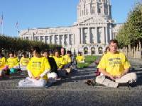 旧金山市政厅前的弘法炼功和教功