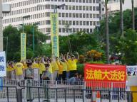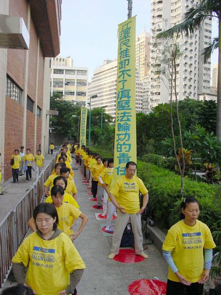 “抗议从来都没有打出反对政府的横幅、标语,”香港法轮功索发言人菲亚-萧说,“我们只是想要炼功的自由。我们没有任何政治议程。”