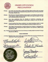 奥玛赫市11月9日颁发“法轮大法日”证书,公告译文如下: