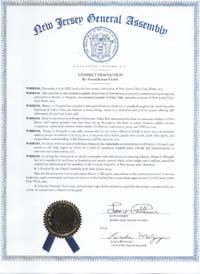 这是继去年9月12日众议院通过由议员Merkt先生撰写,议长Collins先生签发的表彰李洪志大师大会决议后的又一个嘉奖决议。 “在新泽西州‘法轮大法周’之际,州众议院全体议员向令人尊敬的法轮大法创始人李洪志大师致以亲切的问候和崇高的敬意。”