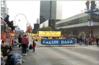 在游行进行当中,大家亲手装饰的花车看起来真象一支小船,而挂在上面的横幅又如同扬起的风帆,当师父的口令在空中回荡时,不禁想起"心自明"中"法度众生师导航 一帆升起亿帆扬",泪水顿时夺眶而出.对"如果你们人人都能从内心认识到法,那才是威力无边的法的体现──强大的佛法在人间的再现!"似乎又有了一点新的理解。