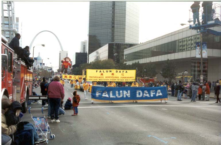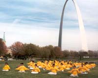 游行结束后,学员们来到圣路易著名的拱门公园集体炼功,拍照。下午和晚上,四州学员又利用这一难得的机会进行了学法,交流。