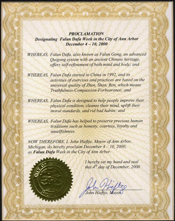 为此,我,约翰海夫蒂,密西根州安娜堡市市长郑重宣布: