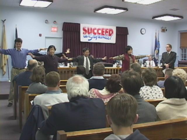 市长先生又接着告诉大家法轮大法在世界各地得到了众多的奖励,然后,邀请学员表演功法。虽事先没有准备,学员们还是整齐地表演了第一套功法,全体与会者报以热烈的掌声。市长先生说:“一般炼习者在公园等公共地方炼习,通过炼习得到放松和身心的修养。这样平和的功法可以在象今天这样的政府会议上表演,我们认为是一件很平常的事情,然而在另一个国家,人们因为炼习却遭到了禁止和迫害。”
