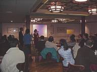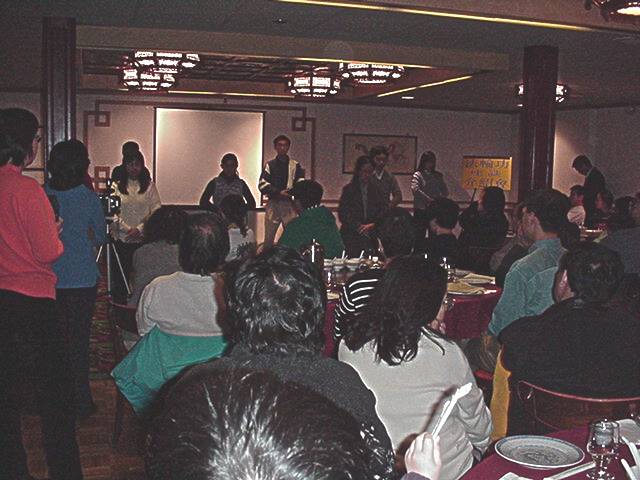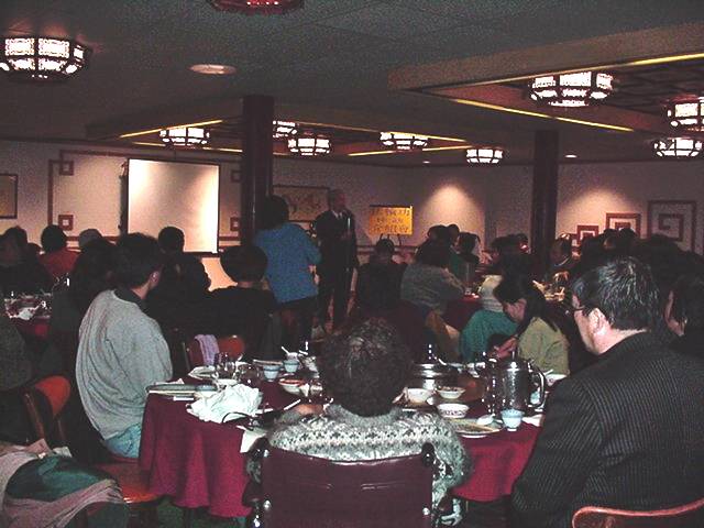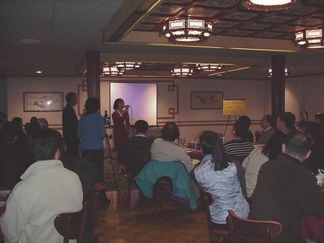介绍会在平和轻松的氛围中开始。主持人首先播放了“法轮大法在台湾”及“法轮功真相”。之后,法轮功学员演示了五套功法。就餐期间,学员和来宾愉快交谈,气氛融洽、热烈。五位学员相继向大家讲述了修炼法轮大法的亲身体验。一位来自某公司的高级技术主管真诚而幽默地介绍了他是如何走进修炼,以及相继而来奇迹般的身心变化;刚到美国不久的一名大陆姑娘,以她进京上访被关押的经历让听众对江泽民政府践踏人权有了更直接的认识;现在哈佛医学院的一位访问学者讲他94年得知大法但没有在意,直到身心憔悴、患上绝症、没有办法时,是大法使他重新成为身心健康、知道人生意义的人。最后他语重心长的告诉大家,百闻不如一见,一见不如体验。