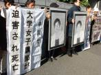 学员代表并向使馆递交请愿书,虽是工作日,但使馆铁门紧闭,门外信箱在修理,传达室人员根本置之不理,日本警卫亦感无奈,最后只有将请愿书放在修理中的信箱边空地。
