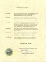 因此,我,米哥尔.A.普利多,圣塔安娜市市长代表本市议会宣布二零零零年十二月四至八日为“法轮大法周”,并鼓励圣塔安娜市市民考虑打坐和锻炼对于他们生活的益处。