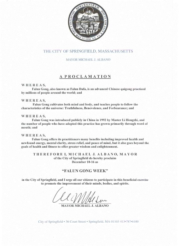 鉴于:过去的一年,法轮大法学员在大波士顿地区以不同渠道进行了免费课程和功法演示,给本地市民介绍法轮大法的益处;