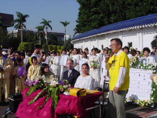 值得一提的是,去年四月北京当局逮捕法轮功学员以前,台湾修炼法轮功的人数不过数百人,但近一年半来人数已达5--6万。