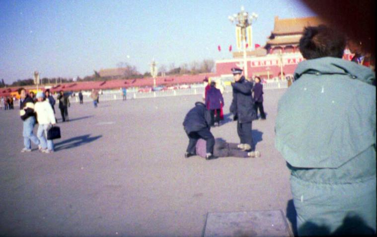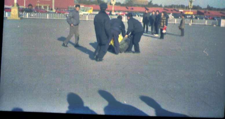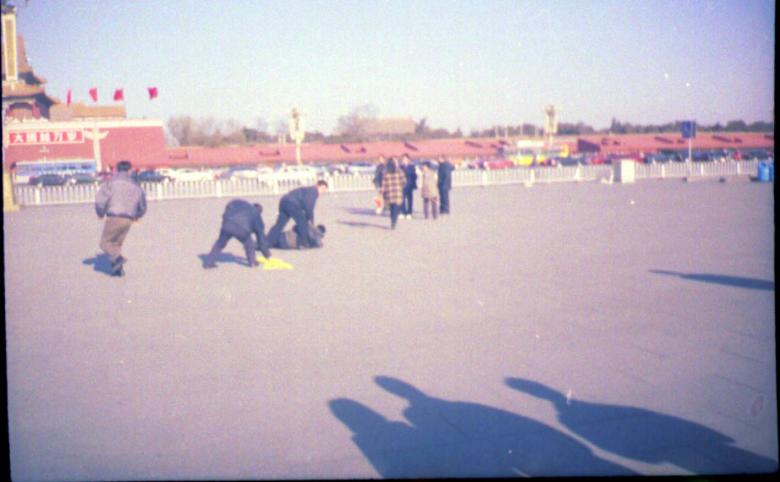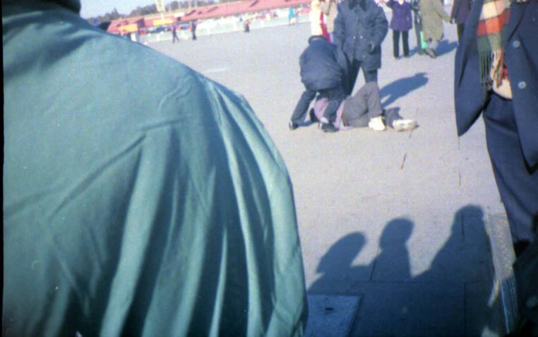 2000年10月2日上午天安门广场镇定自若的炼功人