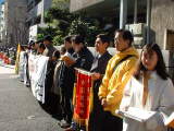 学员代表向使馆递交请愿书,虽是工作日,但使馆铁门紧闭,日本警卫说使馆有言拒收请愿书。经再三交涉学员决定寄送使馆,用一切可能的办法窒息邪恶。(日本学员供稿)