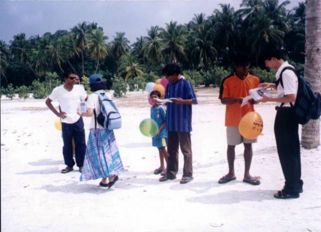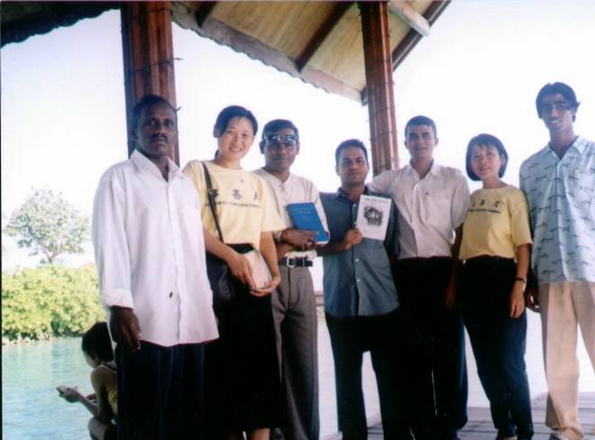 在这次洪法中,我们派发了许多介绍大法的资料,赠送了一些大法书籍、教功VCD、九天讲法VCD及其它有关资料给当地有缘人。我们在船上、渡假村等处教功,每到一处学员都会带着播放普度、济世音乐的录音机,环岛一周,有些居民非常喜欢大法音乐,我们就将音乐带送给他们。