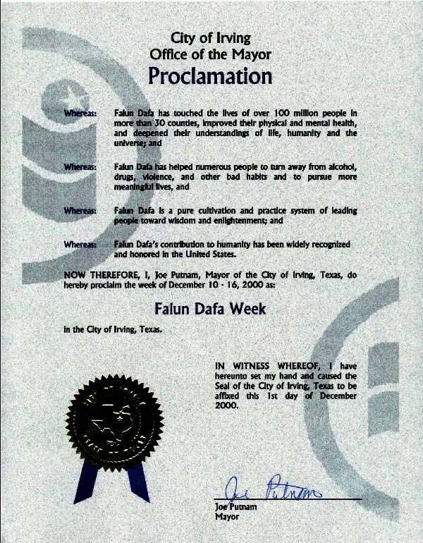 因此,现在,我,马克莫里尔,以该市章程所授予的权力命名十二月二日为新奥尔良市“法轮大法日”。