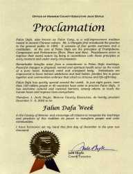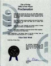 鉴于借此法轮大法周之际,我们表彰这一被公认为促进身心健康的功法;