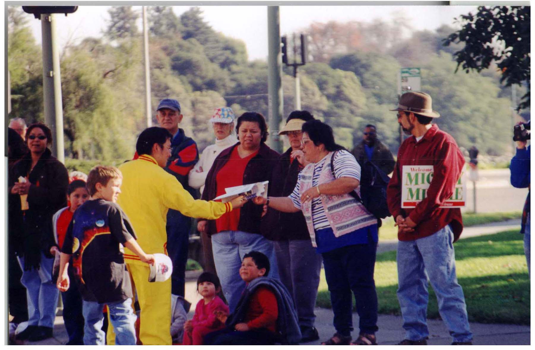 与此同时,旧金山中国城附近的说明真相活动也不曾放松,在学员们无私的付出和不懈努力下,一个月前受中国政府欺骗而在花园角制造事端的那几位老侨胞在面对学员们的善意问候时也不再恶言相对。