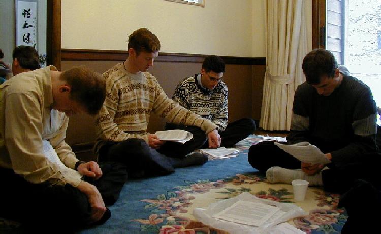 【明慧网二零零零年二月二十二日】 2月19日,恰巧是阴历正月十五,纽约、新泽西、宾州的西人学员自己组织了一次全天的学法炼功交流活动。50余名参加的学员中,绝大部分是西语学员,其中包括英语、俄语、西班牙语等语系的学员。一些两年多前开始修炼的学员因为居住分散、生活节奏紧张,已经很久没有机会这么多故友聚在一起当面交流了。这次大家来到新泽西一位学员的家中,通读了最新英译本的《法轮佛法(精進要旨)》全书和《法轮佛法(在长春辅导员会议上的讲法)》的部份章节,并交流了弘法中的修炼心得,觉得格外亲切难得。