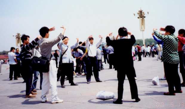 【明慧网2000年5月15日】 2000年5月13日中午, 天安门广场国旗前10位学员开始炼“法轮桩法”庆祝节日。