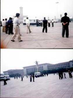 目击者证言一:5月13日天安门见闻 今早9:30,在天安门广场看到有学员在旗杆附近炼功,最多的一批有九个。