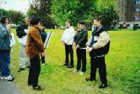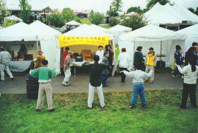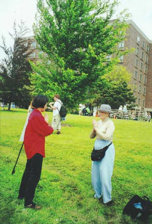 【明慧网2000年5月18日】 5月13和14两天,来自纽约上州水牛城和罗彻斯特的弟子欢聚在ROCHESTER的高地公园,在著名的丁香花节中庆祝首届法轮大法日,并同时向众多的游人弘法、教功。