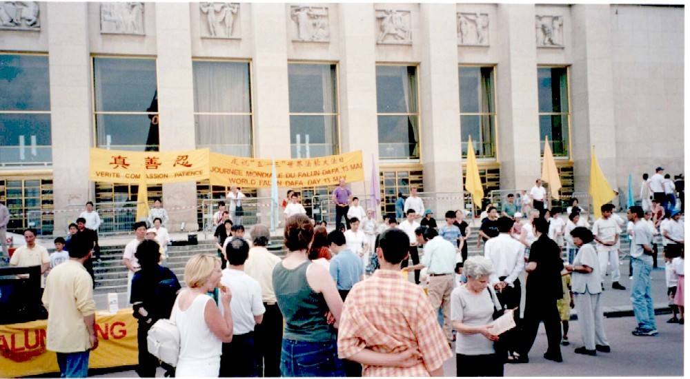 一位女士在国 内曾学过法轮功。中国政府全面镇压法轮功后,她不能公开炼功,只好把法轮大法书籍悄悄收藏起来。几个月前,她来到法国,听到了一次 RFI 对法轮功学员的采访,高兴得不得了,一直在寻找法国的法轮功学员。这次终于在 RFI 上听到五月十三日在 Trocadero的弘法活动,就特地赶来,并表示今后每个星期天都要来,和大家一起弘法。