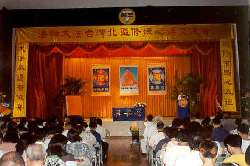 时至下午二时许,司仪以略带兴奋颤抖的声音宣布一个特别的讯息,那就是尊敬的师父今天特意发来传真期勉台湾弟子。此刻全场弟子莫不深受鼓励和感动,隐隐啜泣的声音四起,司仪应在场学员要求,一而再,再而三地重覆诵读师父这份来电。