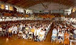 在末劫乱世,有一块人间净土活在每一个法轮大法弟子的心中,这块净土被大法弟子不分种族,不分地域,日日滋养著,茁壮扩大著。台湾大法弟子秉承师训,相互促进,共同提高,在六月二十五日,一个天清气朗的星期假日,齐聚台北,召开“台湾北区修炼心得交流会”,来自台湾各个角落上千的大法弟子,一大早鱼贯进入 师父于九七年首度来台讲法的台北三兴国小体育馆。会场四周黄底红字写著大法的横幅自由地一字摆开,将“以法为师”的精神清楚明白地彰显在法会上,配合普度济世的音乐贯穿全场,面对此时此景,台湾学员莫不珍惜在这人间修炼的道场中得以堂堂正正,齐聚切磋,互勉精进的机会。即使学员挤满了饱合的空间,场面依然庄严祥和。早上八点二十分,法会在大家齐声诵读师父“心自明”一诗后正式展开。