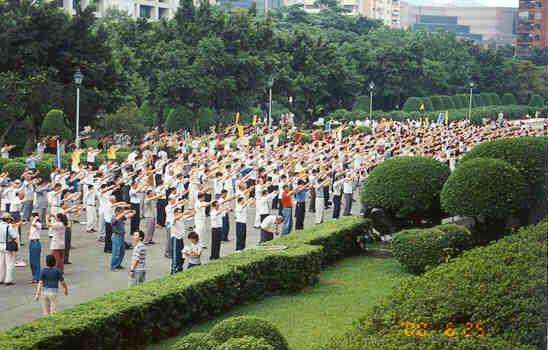 6月18日,300名学员在南方广州一个公园炼功,在后来的一周内,北京和东北省会哈尔滨据报也有100人出来炼功,香港人权民运信息中心报道。