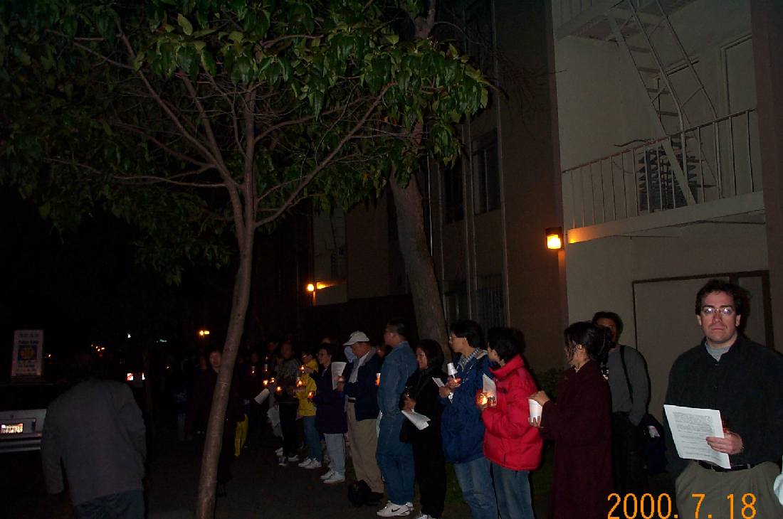 一年来,中国政府对法轮功的镇压,在镇压中令人发指的手段受到世界各国政府的谴责。去年十一月,美国参众两院通过决议谴责;美国政府也在联合国就中国人权状况提出议案;欧盟议会也通过决议谴责;还有加拿大,澳大利亚等国;各国际人权机构,如国际特赦,人权观察,自由之家都纷纷表示抗议,很多听到真相的华人与西方人都十分气愤。在此,我们感谢各界的支持。只要是出于善心,同情支持法轮功的,不管是什么肤色、种族、国家,不管持何种政见、信仰,我们都表示欢迎。