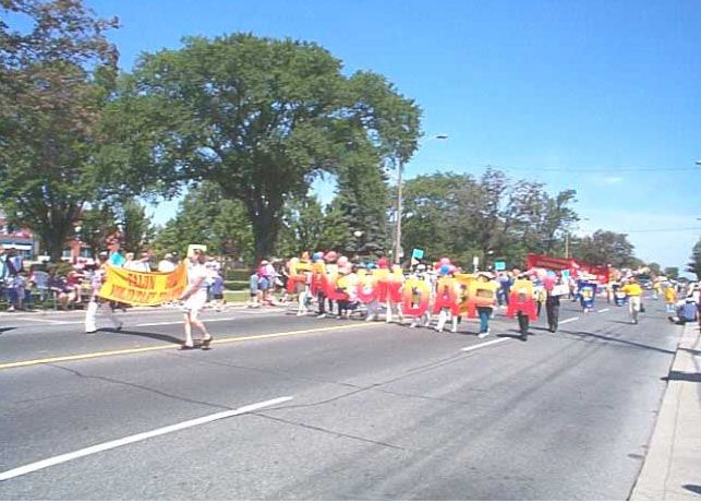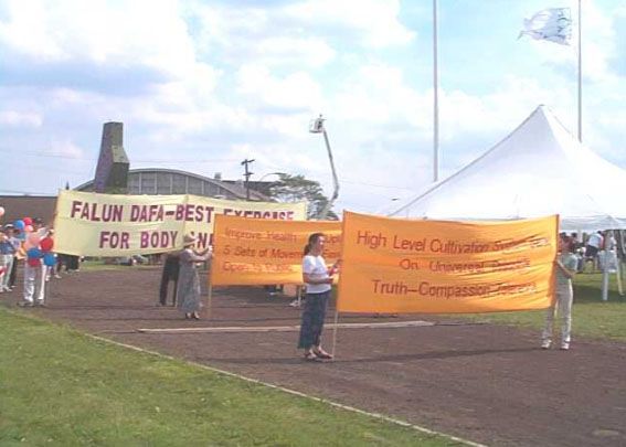 下午3时左右,约90名学员又跋涉40多公里赶到NORTH YORK的公园参加下午的游行。早在1998年的类似游行中,法轮功学员就给举办者留下了深刻而美好的印象。这次,游行队伍里一半是法轮功学员,仿佛这次游行是为法轮功而举办的。