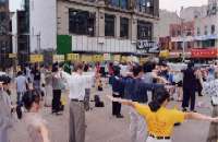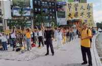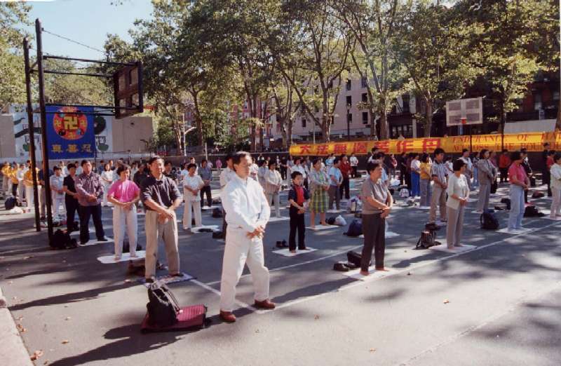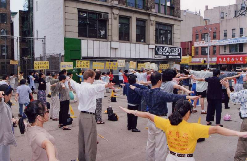 【明慧网2000年8月20日】进入八月份以来,每个星期六上午来自纽约和新泽西的大法学员都在位于曼哈顿中国城的“中国广场”举办弘法及向世人讲明真相的活动。十九日这天,来自纽约、新泽西、康州的学员又相聚在中国广场,于上午八点至十一点举行集体炼功及向路人赠送法轮功真相资料;中午十二点到下午一点半举行游行活动。(2000年8月20日报道)