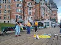 8月4日,我们很早就到了魁北克市一座古城墙边,这里是通往著名风景点的必经之路。六位法轮功学员在一旁炼五套功法,我和另一位学员发报纸。不久,一位骑单车的男士过来向我们要报纸。他说,我早就知道法轮功,我在别处见过你们,这里的人都不了解法轮功,你们要经常来,……