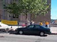 8月10日上午7时,我们登上了开往爱德华王子岛的渡轮。在船上,我们遇到了几位出来度假的中国留学生。我们的话题自然离不开法轮功。我们交谈了大约1个小时,分手时,他们已经知道了许多法轮功真相。在爱德华王子岛上,我们主要在夏洛特敦洪法。我们先去找市长,但市长不在。我们就在市政府前的十字路口上发资料,但是愿意接受资料的人却不象其他地区那么多。我们决定到公园里炼功,在公园里,一个小男孩目不转睛地看着我们,还学着做抱轮的动作。当天下午,我们离开爱德华王子岛,奔向新不伦瑞克省的大城市-圣约翰。