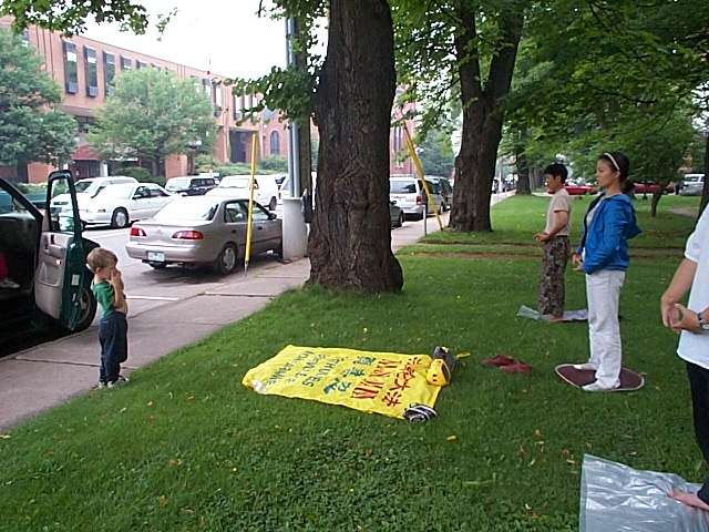 在2个小时的游行途中,我们受到了热烈地鼓掌欢迎。一路上我们散发着洪法资料,许多人冲过来向我们索取资料。500多份传单很快发完了,还有一些传单上没有哈利法克斯地区的联系电话,我们就边写边发,很快也发完了。剩下的最后一点传单资料,我们不得不有选择性地筛选后才发。