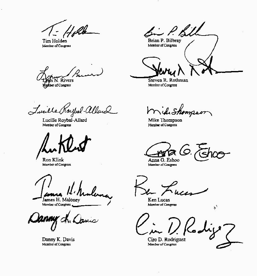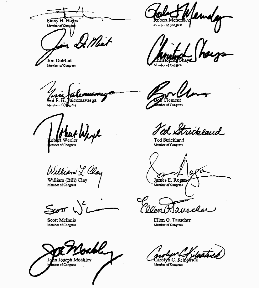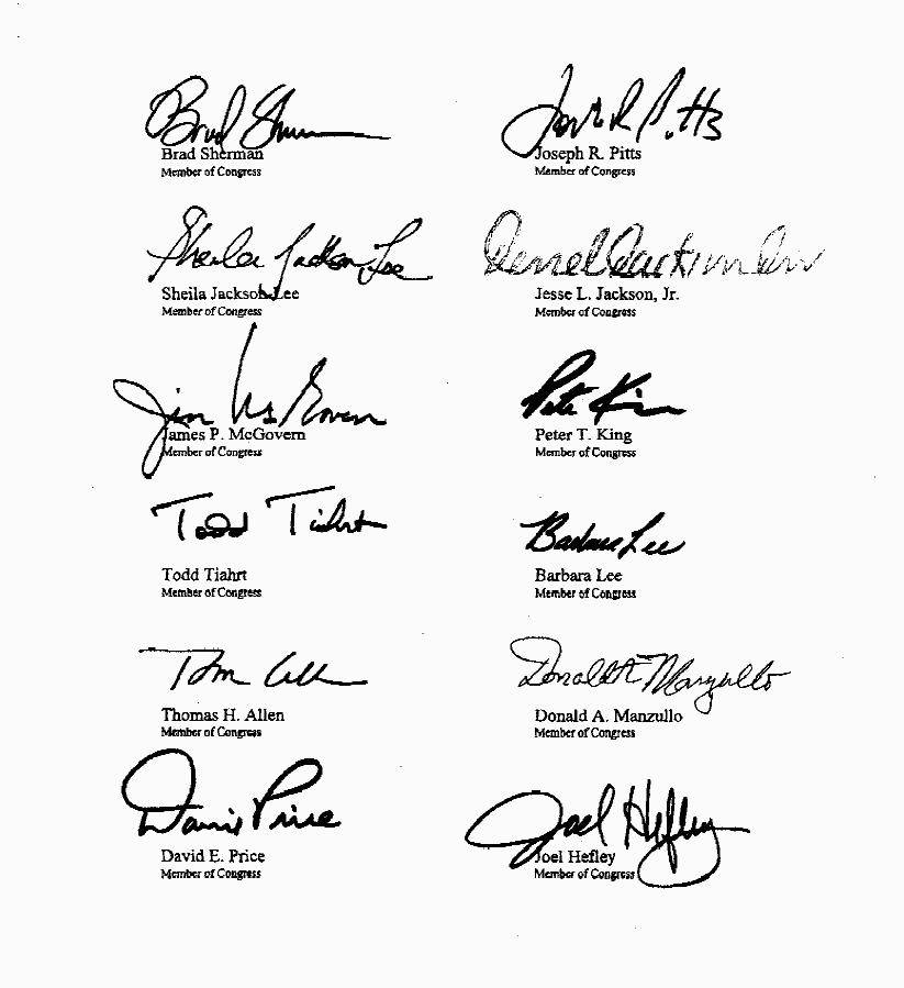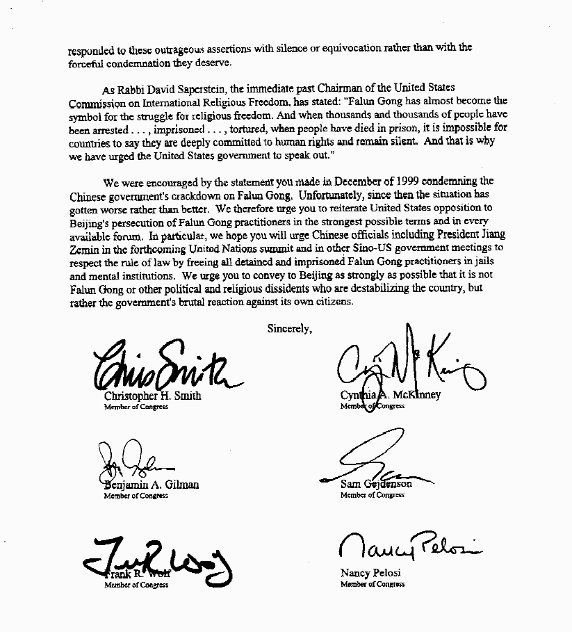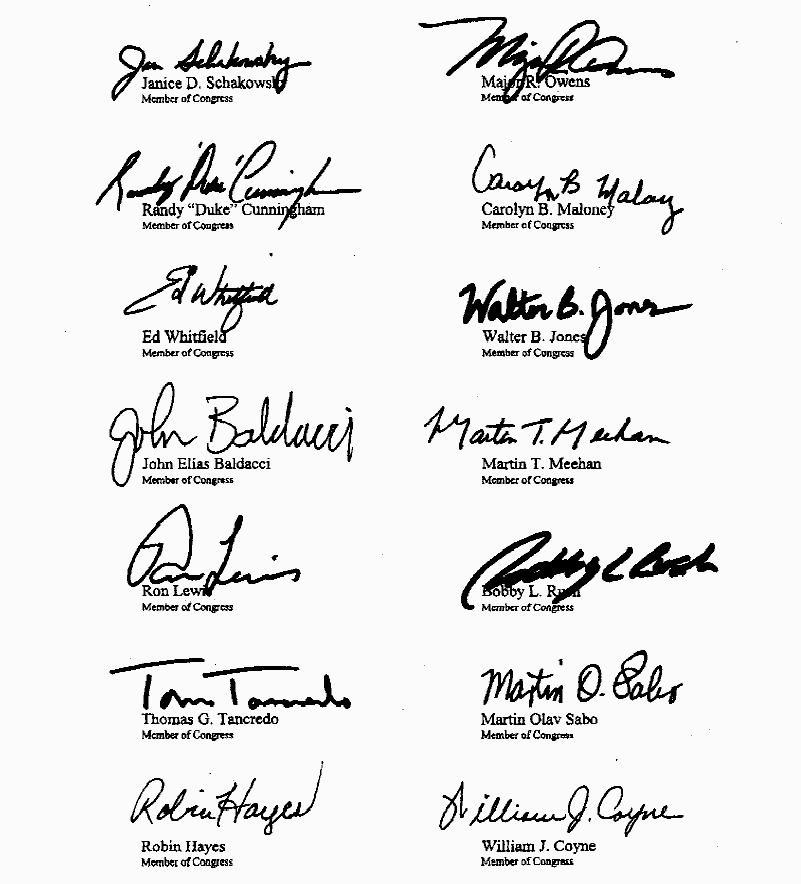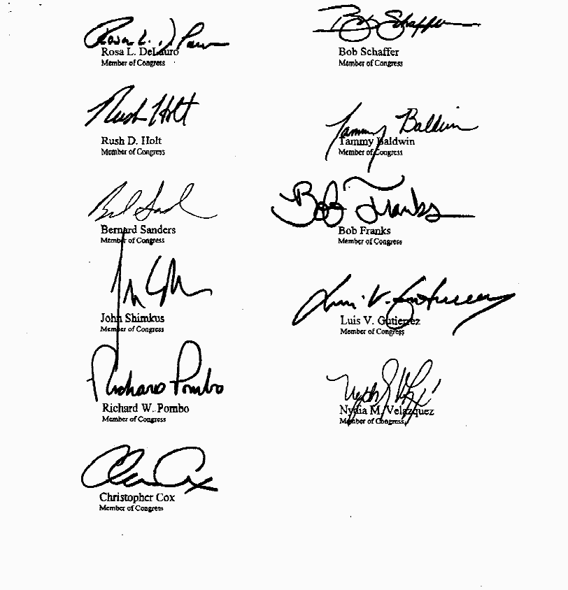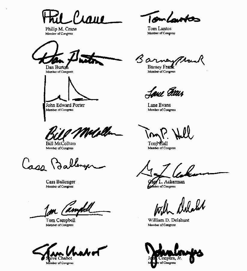 80余名美国众议员假期中特意赶回华府签名致克林顿总统信
