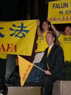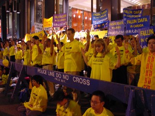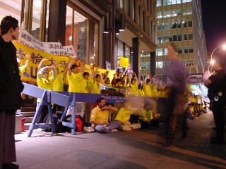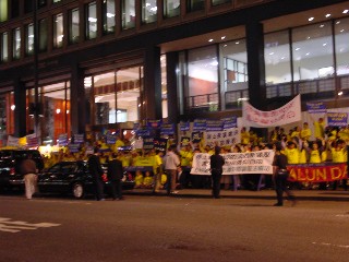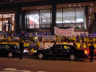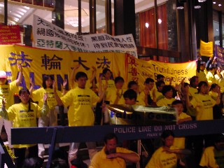 各国大法弟子在华尔道夫酒店附近等待VIP车队