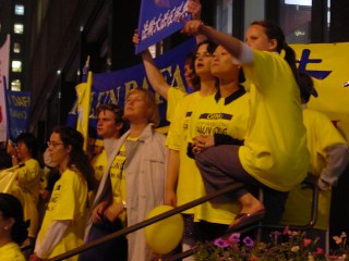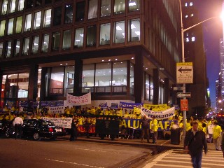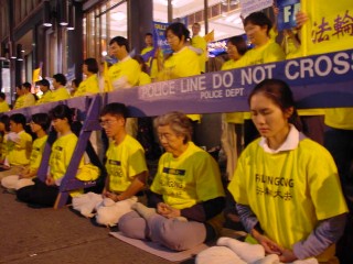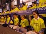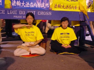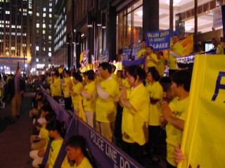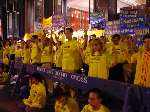 从中国驻联合国使团住地走到联合国大厦的法轮功游行
