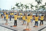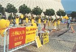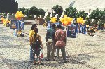 在学员做功法示范时,确实吸引一些途人驻足,但在大法遭受诬蔑和恶毒攻击的时期,许多有缘人确实被谣言障碍着,许多市民总是远远观看学员一言一行。负责咨询台的学员在猛烈的太阳下连续坐了几个小时,态度总是亲切和善,毫无怨言。一位想以法轮功为题做功课的大学生奇怪地问坐在露天广场学法的学员∶“你们不觉得很辛苦吗?”红光满面的学员摇摇头说∶“一点也不辛苦。”我们精神饱满的面貌使她有点不解,一位老学员便领着她参观图片和详细地介绍法轮大法。