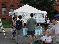 由于伊利诺伊州香槟大学在此的缘故,这里的居民很多元化。我们弘扬大法的展位在主街道上。许多人被我们展出的年青的北京教师法轮大法学员赵昕因坚持信仰而受迫害的照片所震惊,驻足观看并询问。其中很多人表示要给当地的国会议员打电话,建议关注法轮功修炼者在中国受迫害的情况。