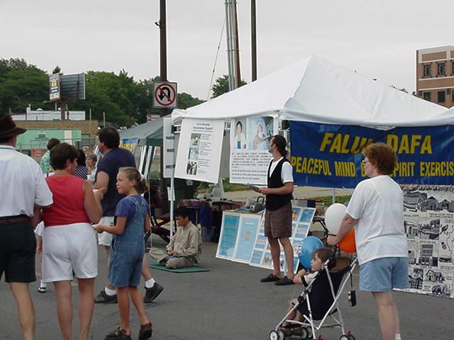 由于伊利诺伊州香槟大学在此的缘故,这里的居民很多元化。我们弘扬大法的展位在主街道上。许多人被我们展出的年青的北京教师法轮大法学员赵昕因坚持信仰而受迫害的照片所震惊,驻足观看并询问。其中很多人表示要给当地的国会议员打电话,建议关注法轮功修炼者在中国受迫害的情况。