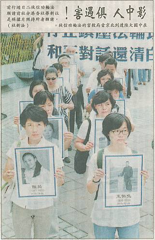 160多名学员下午3时从夏悫公园出发,打着“50法轮功学员被迫害致死”、“停止镇压法轮功 和平对话还清白”、“真善忍”等字句的横幅,在两名小学员捧着被迫害死亡学员总名单展板开路下,捧着死亡学员的遗照或名牌,和平游行到中联办(前新华社)。在繁忙街道上行走,沿途震撼着人心,唤起了善念。